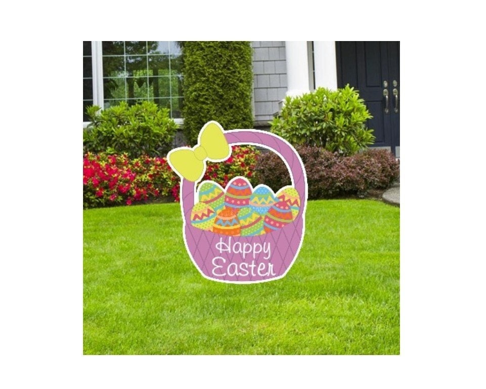 Easter Egg Basket Lawn Sign: Spring Outdoor Decoration (16.5 in)