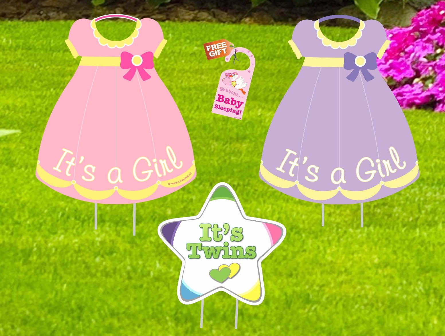 It's Twins Welcome Home Yard Sign: Baby Girl Dresses, Newborn Announcement