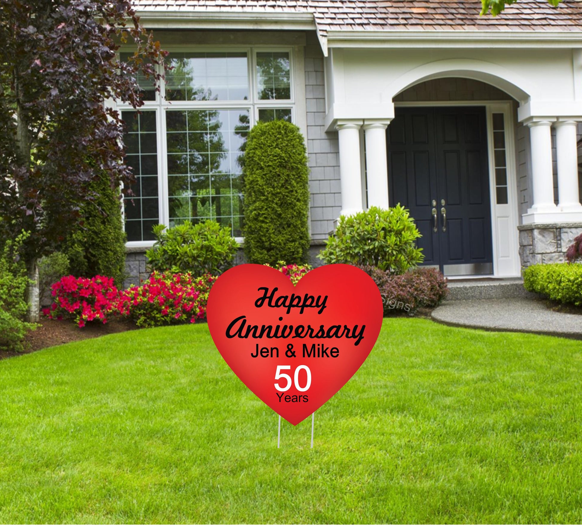 Personalized Anniversary Heart Yard Sign: Custom Lawn Decoration