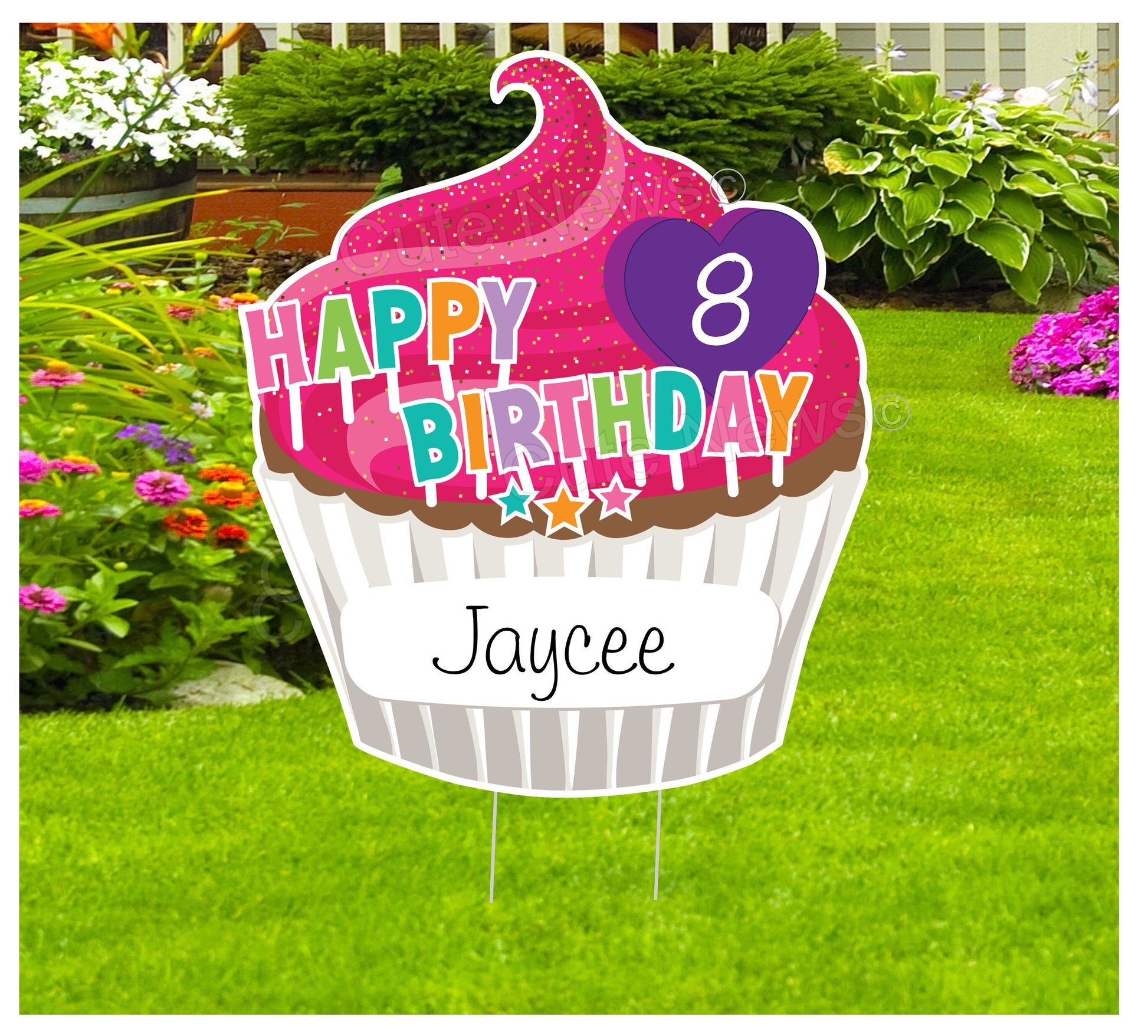 Personalized Cupcake Birthday Yard Sign: Outdoor Party Decor