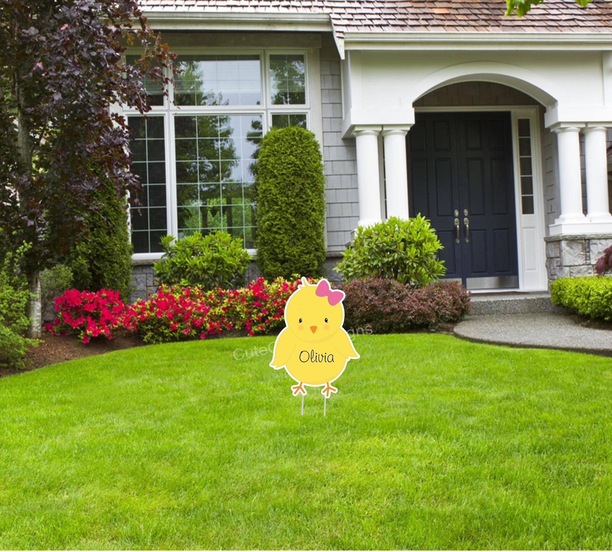 Personalized Easter Chick Lawn Sign: Custom Name Yard Art