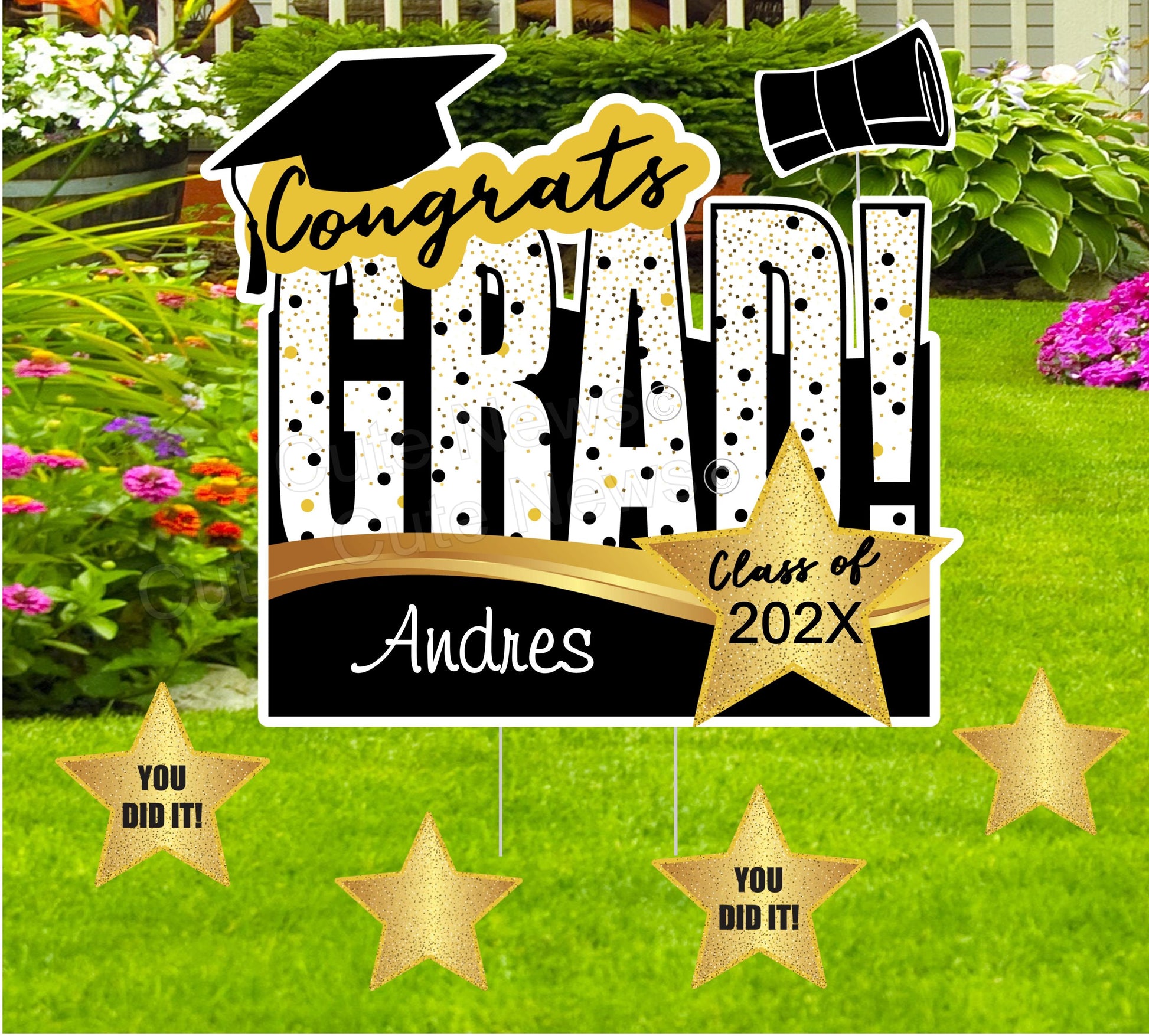 Personalized Graduation Yard Sign: Black & Gold Congrats Decor