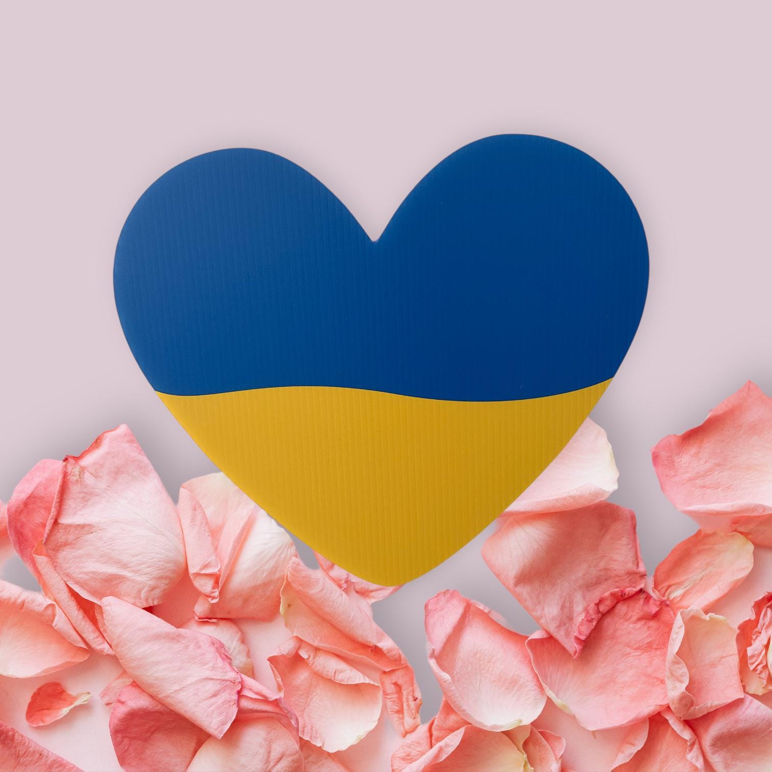 Stand with Ukraine Heart Sign, Indoor, Yard Sign Decoration, Patriotic Lawn Art with Metal Stakes