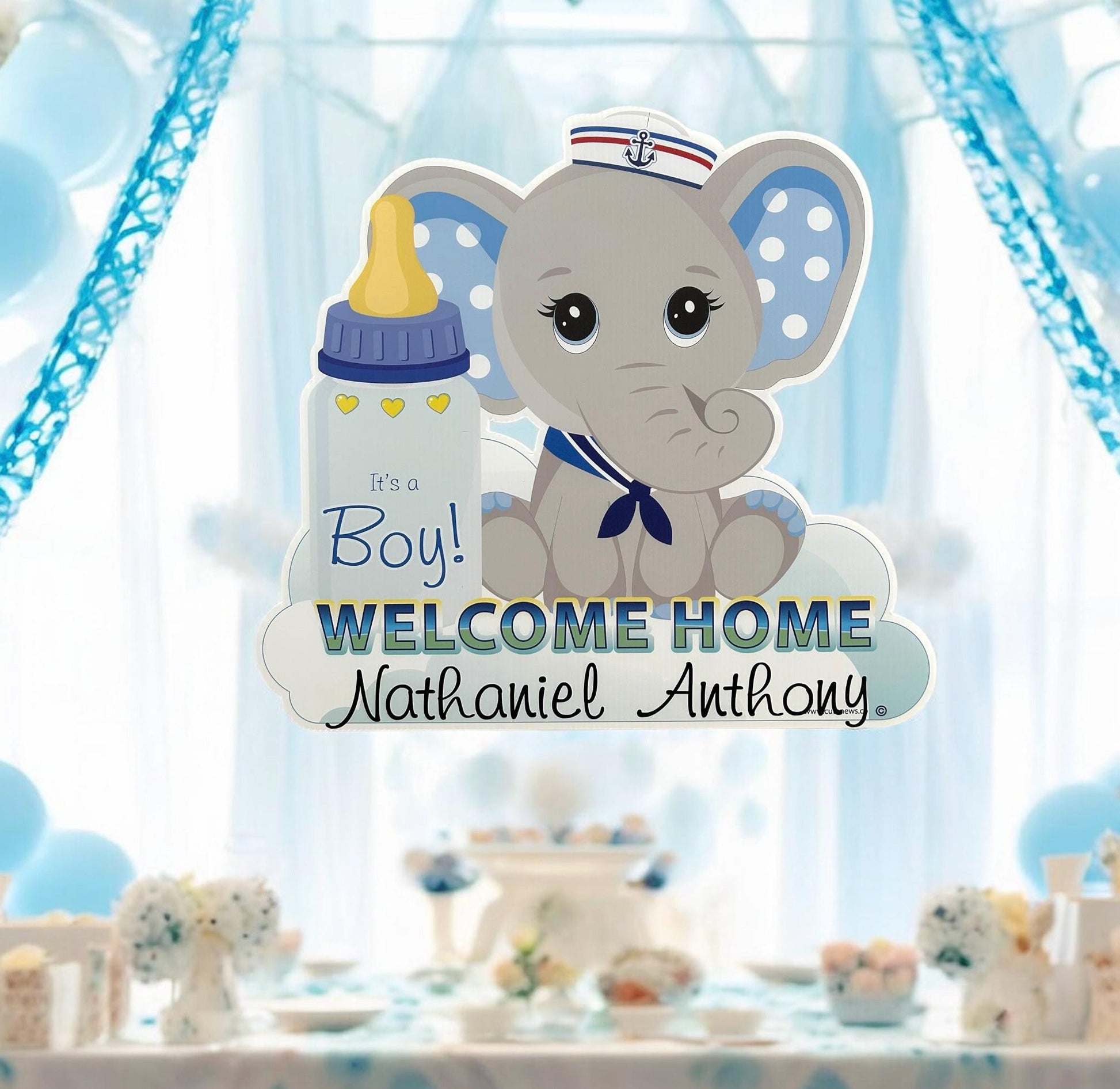 Welcome Home Baby Sign, Its a Girl, Boy Yard Decor, Personalized Elephant Newborn Arrival Art, Neutral Birth Announcement, Stork Shower Gift
