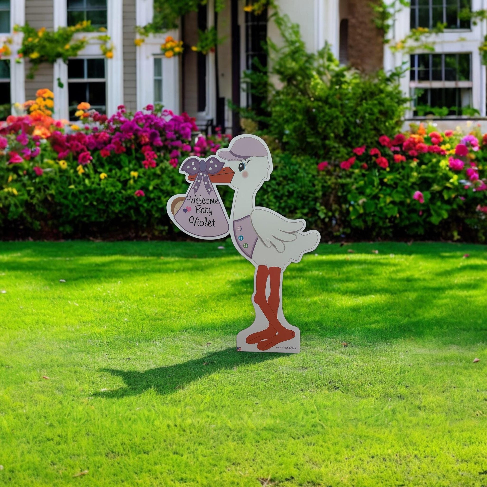 Welcome Home Baby Girl Yard Sign Stork Birth Announcement Stork Yard Sign Personalized Baby Announcement Newborn Decor